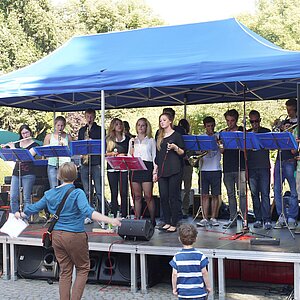 Open-Air-Auftritt der Big Band "The Pauls" auf dem Sommerfest am Rüdesheimer Platz