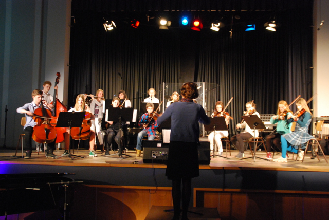Am vergangenen Donnerstag war es wieder soweit: Alle Musikerinnen und Musiker der Schule präsentierten die Ergebnisse der monatelangen Probenarbeit und bereiteten einem gut gelaunten Publikum einen äußerst abwechslungsreichen, stimmungsvollen und unterhaltsamen Konzertabend.