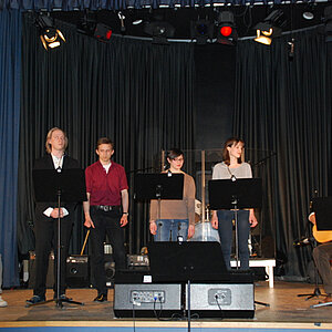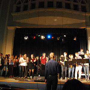 Aber nicht nur die Darbietungen auf der Bühne waren bemerkenswert: Hinter den Kulissen wirbelten die Mitglieder der Tontechnik- und der Lichttechnik-AG, und zwar dieses Mal ganz ohne die Unterstützung der Lehrer. Ein dickes Lob geht an dieser Stelle an die verantwortlichen Schüler Wyn und Leo und ihre Teams!