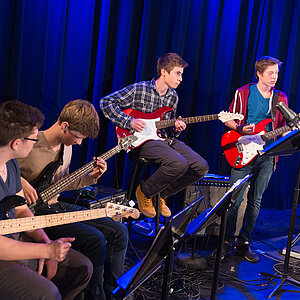 Besondere Freude bereitete die Begegnung mit dem ehemaligen Bandmitglied und PNS-Schüler Sidney Werner (Bass), der mit seinem Ensemble "Der Organismus" den gleichzeitig stattfindenden Landeswettbewerb "Jugend jazzt" für Combos gewonnen hat.