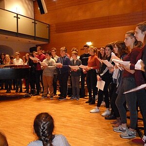 Zum ersten Mal sind die Musikerinnen und Musiker der PNS zu Gast auf Schloss Colditz gewesen. Wir hatten dort nicht nur ein traumhaftes, winterliches Ambiente wie im Märchenklassiker „Drei Haselnüsse für Aschenbrödel“, sondern auch optimale Probenbedingungen, da das Schloss die Landesmusikakademie Sachsen beherbergt. Obwohl wir eine Riesengruppe von 128 Teilnehmern waren, verlief die Musikfahrt harmonisch und entspannt. Musikalischer Höhepunkt war wie in jedem Jahr der Gala-Abend, an dem wir schon einige Stücke aus dem Musical „Linie 1" präsentieren konnten.