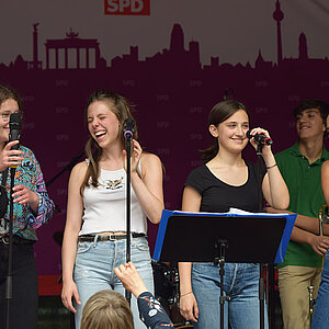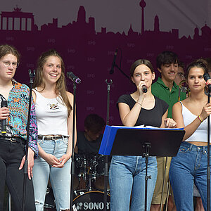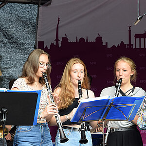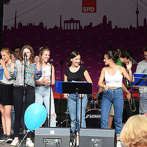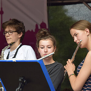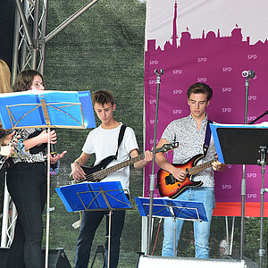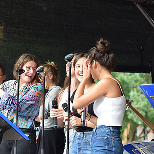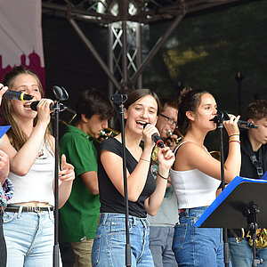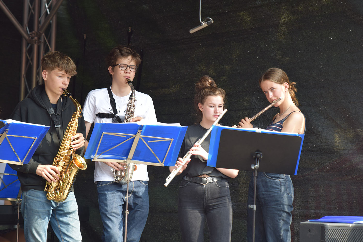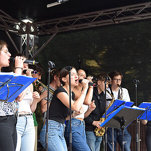 In bewährter Weise waren auch in diesem Jahr die Big Band und die Tontechnik-AG unserer Schule wieder auf dem Kiezfest am Rüdesheimer Platz am 16. Juni zu hören. Das Wetter war uns treu und meistens schien die Sonne. Die Band konnte für gute Stimmung sorgen und das Publikum sparte nicht mit Applaus. Wie immer haben wir uns besonders gefreut, dass auch viele ehemalige Musiker*innen und Tontechniker vorbeischauten und uns unterstützen! Ein weitere Besonderheit war, dass die Tontechnik in diesem Jahr komplett selbstständig in Schülerhand war. Wir freuen uns schon auf das nächste Jahr!