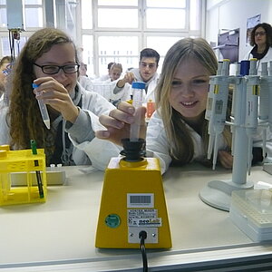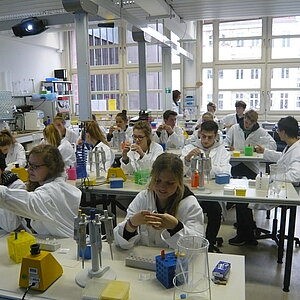 Im Rahmen unseres aktuellen Themas "Genetik" unternahmen 17 Schülerinnen und Schüler aus den beiden Biologie-Grundkursen von Frau Kröger aus Q3 am 04.12.2014 eine Exkursion ins Genlabor des Lette-Vereins. Die Exkursion stand unter dem Motto "Isolierung der eigenen DNA" und „Der genetische Fingerabdruck“. Der Workshop, der uns dort erwartete, war in zwei Teile eingeteilt.