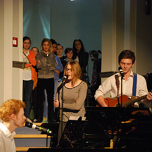 Aber nicht nur die Darbietungen auf der Bühne waren bemerkenswert: Hinter den Kulissen wirbelten die Mitglieder der Tontechnik- und der Lichttechnik-AG, und zwar dieses Mal ganz ohne die Unterstützung der Lehrer. Ein dickes Lob geht an dieser Stelle an die verantwortlichen Schüler Wyn und Leo und ihre Teams!