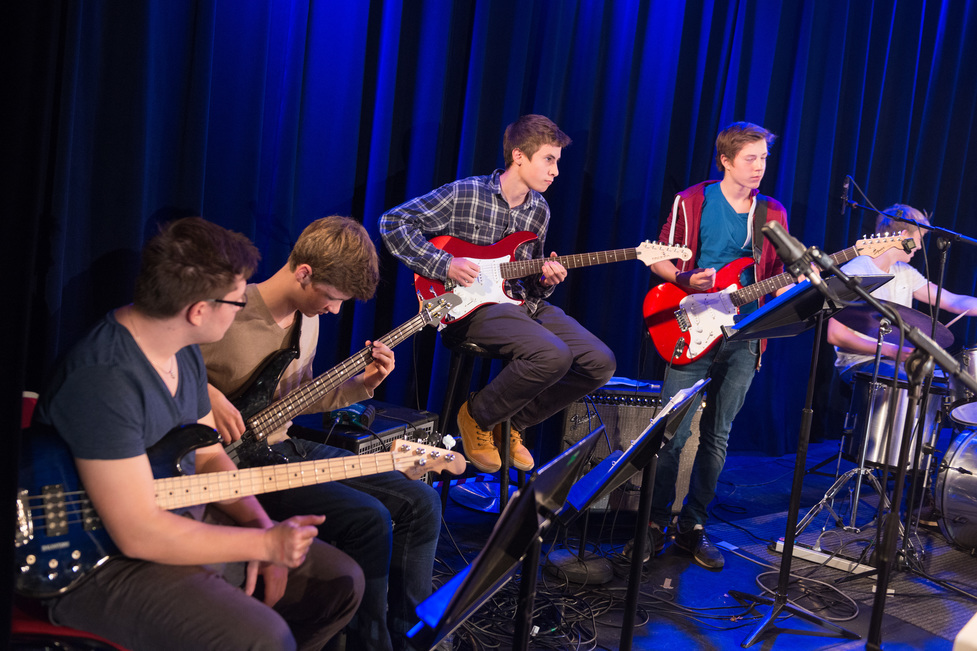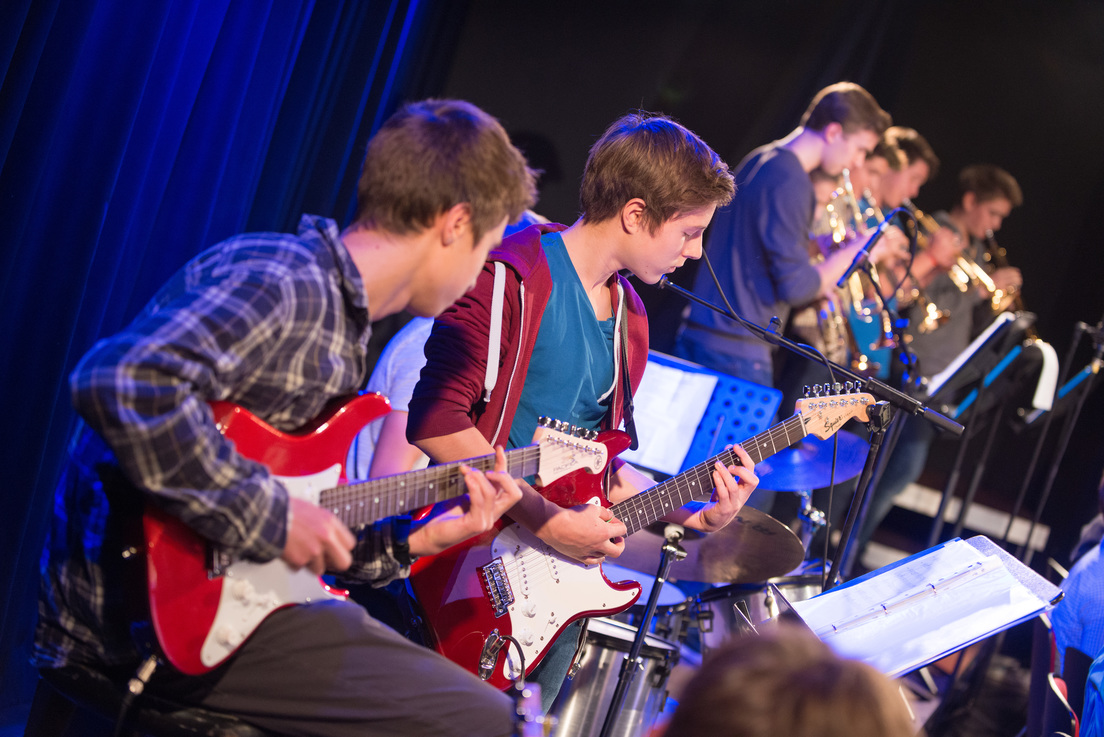 Besondere Freude bereitete die Begegnung mit dem ehemaligen Bandmitglied und PNS-Schüler Sidney Werner (Bass), der mit seinem Ensemble "Der Organismus" den gleichzeitig stattfindenden Landeswettbewerb "Jugend jazzt" für Combos gewonnen hat.