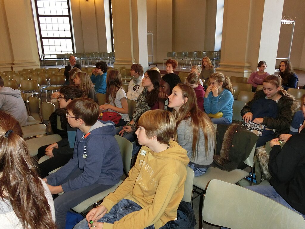 Eine Gruppe von Religionsschülern besuchte dieses Jahr die Französische Friedrichstadtkirche am Gendarmenmarkt um über das hochaktuelle Thema "Flüchtlinge" einen vertiefenden Einblick zu erhalten. Die Französische Friedrichstadtkirche wurde als Kirche von französischen Flüchtlingen vor 300 Jahren gebaut.
