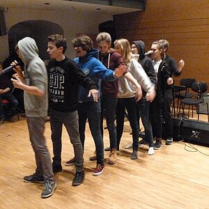 Zum ersten Mal sind die Musikerinnen und Musiker der PNS zu Gast auf Schloss Colditz gewesen. Wir hatten dort nicht nur ein traumhaftes, winterliches Ambiente wie im Märchenklassiker „Drei Haselnüsse für Aschenbrödel“, sondern auch optimale Probenbedingungen, da das Schloss die Landesmusikakademie Sachsen beherbergt. Obwohl wir eine Riesengruppe von 128 Teilnehmern waren, verlief die Musikfahrt harmonisch und entspannt. Musikalischer Höhepunkt war wie in jedem Jahr der Gala-Abend, an dem wir schon einige Stücke aus dem Musical „Linie 1" präsentieren konnten.