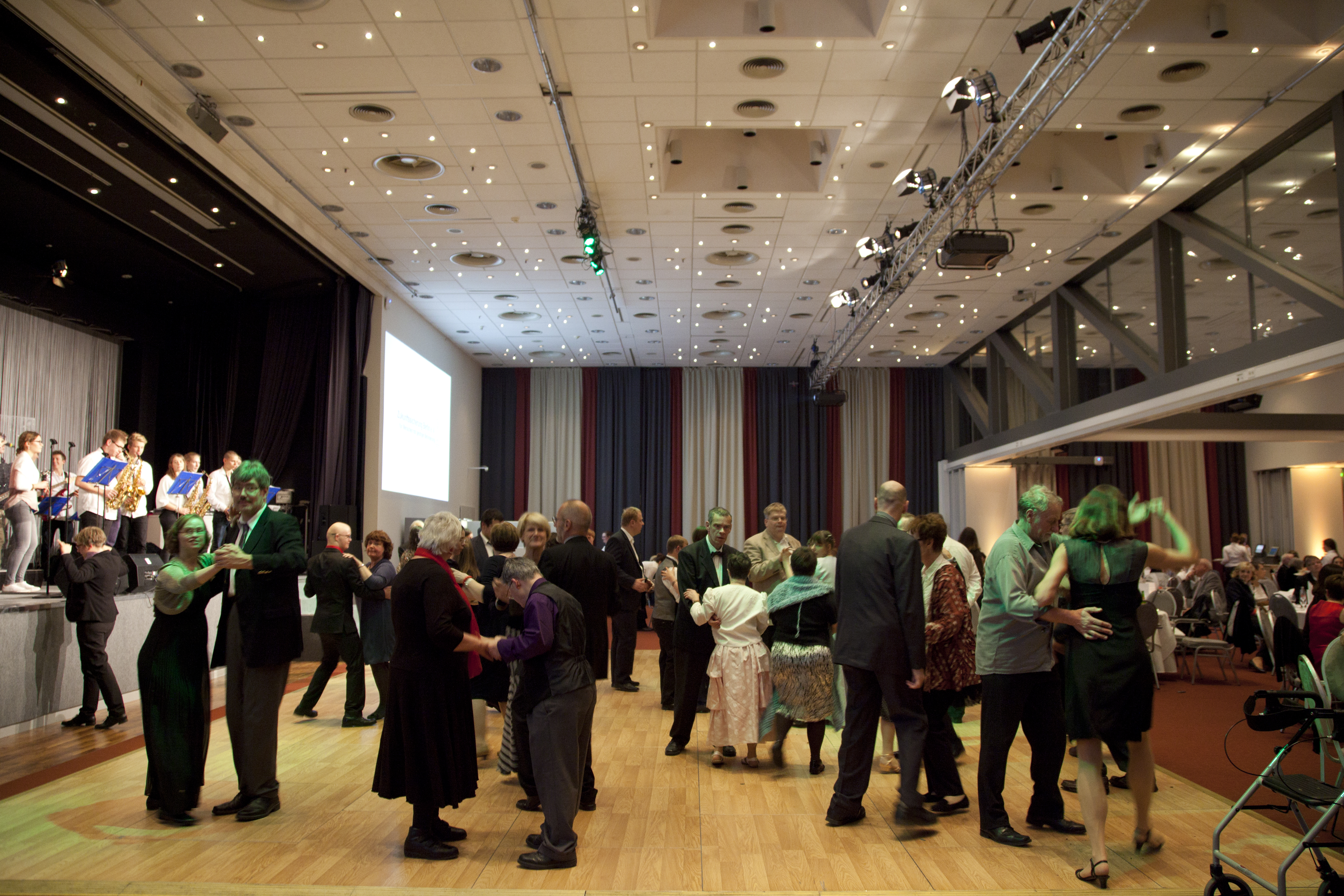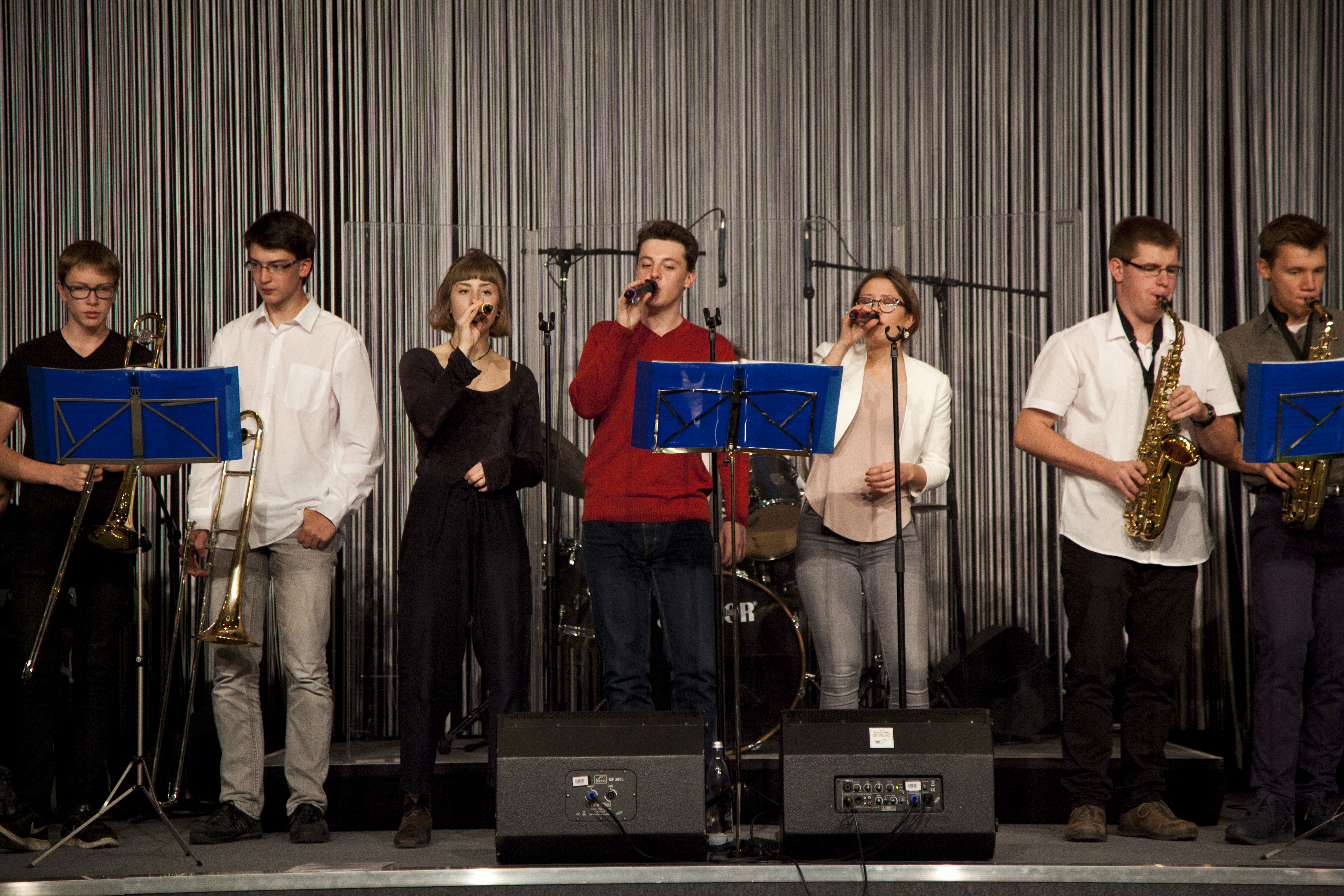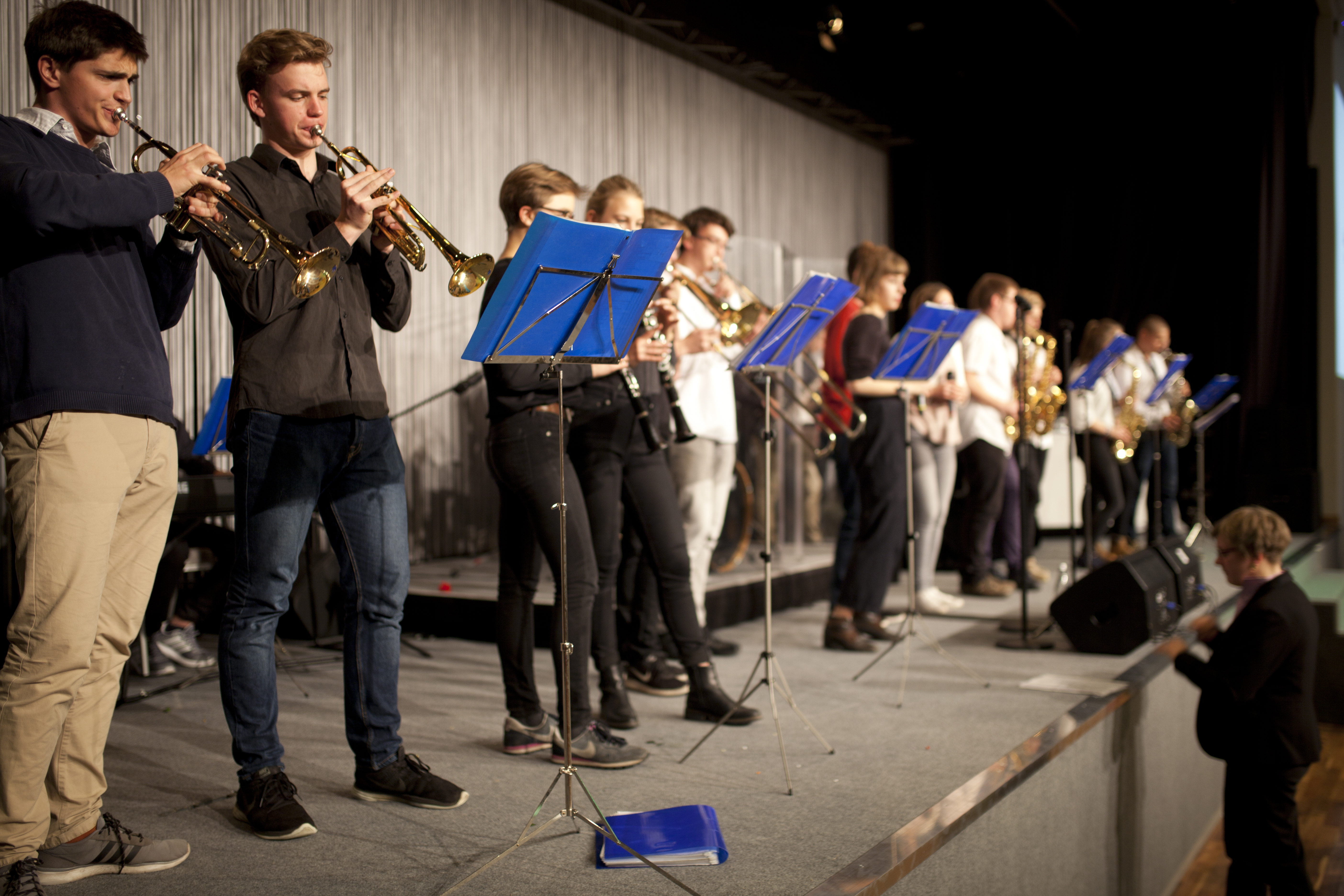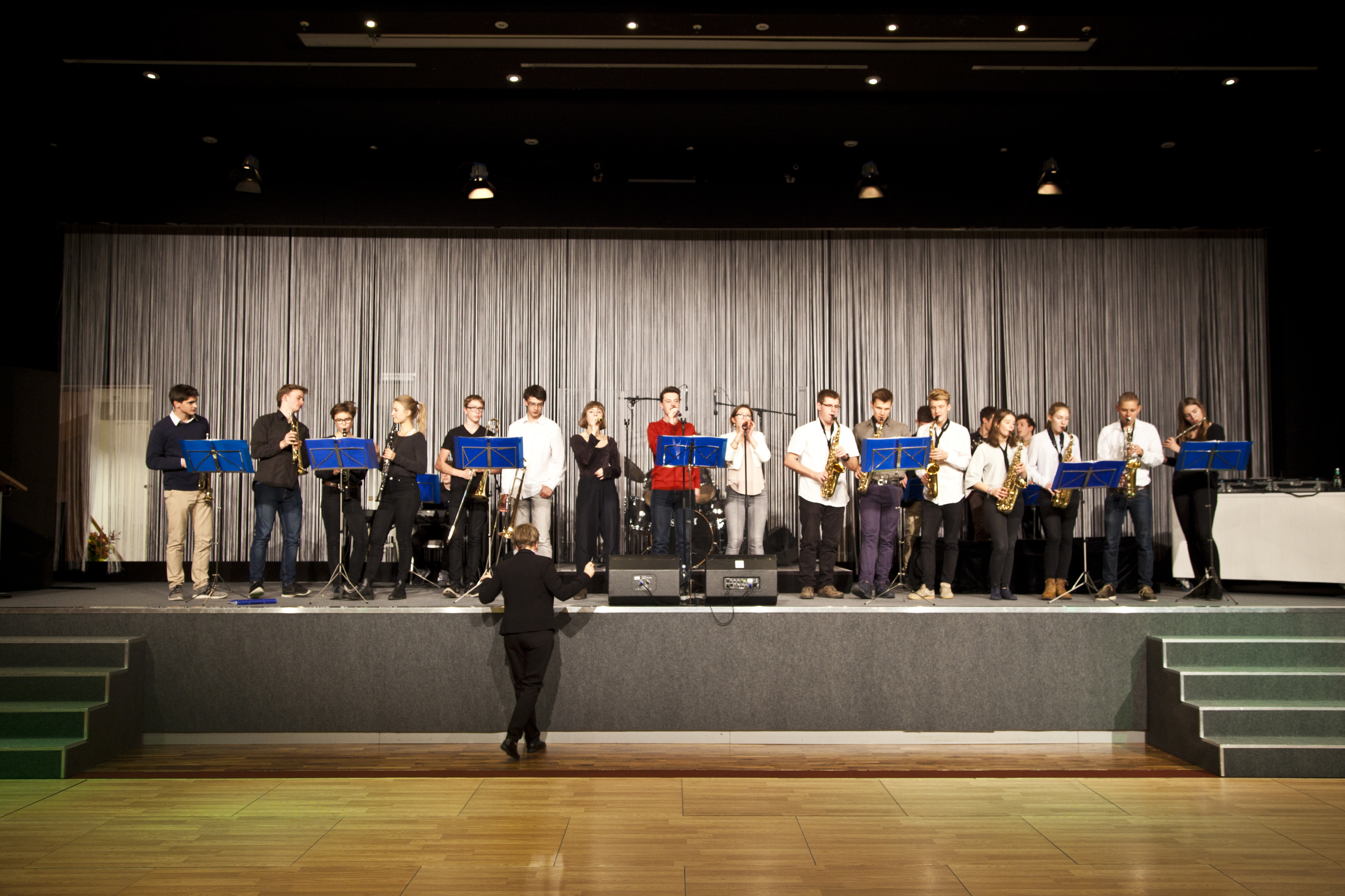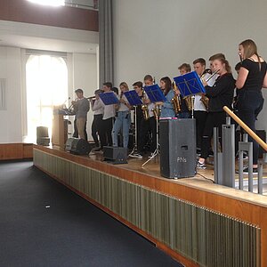 Am 28.9.2016 hatten unsere Big Band- und Tontechnik-AG die Gelegenheit, den 22. Bundeskongress für Schulpsychologie im Audimax der Humboldt-Universität zu Berlin zu eröffnen. Das Publikum ließ sich von den tontechnisch professionell abgemischten Klängen unserer Musikerinnen und Musiker mitreißen, wie man nicht zuletzt am begeisterten Mitklatschen zu dem mittlerweile schon legendären Song „Rolling in the deep“ von Adele ablesen konnte. Am 12.11.2016 folgte dann bereits der zweite externe Auftritt unserer beiden Arbeitsgemeinschaften im Hotel Estrel. Der Berliner Elternverein „Zukunftssicherung e.V.“, der Menschen mit geistiger Behinderung fördert, hatte unsere Big Band zur musikalischen Begleitung seines Jubiläumsballs „30 Jahre Ahornallee“ eingeladen. Ein für uns ungewöhnlicher, aber toller Anblick: Es wurde die ganze Zeit mitgesungen und vor allem getanzt!