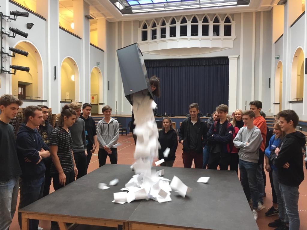 Viele folgten dann auch heute am Freitag, den 14.9.2018 dem Ruf an die Urne und kamen zum feierlichen Wahlakt in die Aula. Die als Wahlvorstand fungierenden Leistungskurse PW von Herrn Kozelnik und Herrn Kapteyn sorgten für einen reibungslosen Ablauf der Veranstaltung. Die Experten informierten über das Procedere, besorgten Wahlkabinen, Stimmzettel und Urne. Sie führten Verzeichnisse, zählten Stimmen und fertigten die Niederschrift an. So konnte sie am Ende des Tages eine Wahlbeteiligung von 89% bilanzieren und folgendes Endergebnis ermitteln: