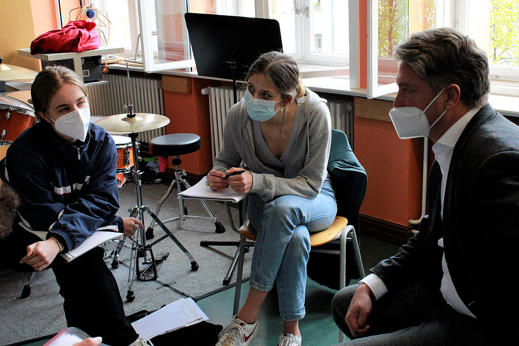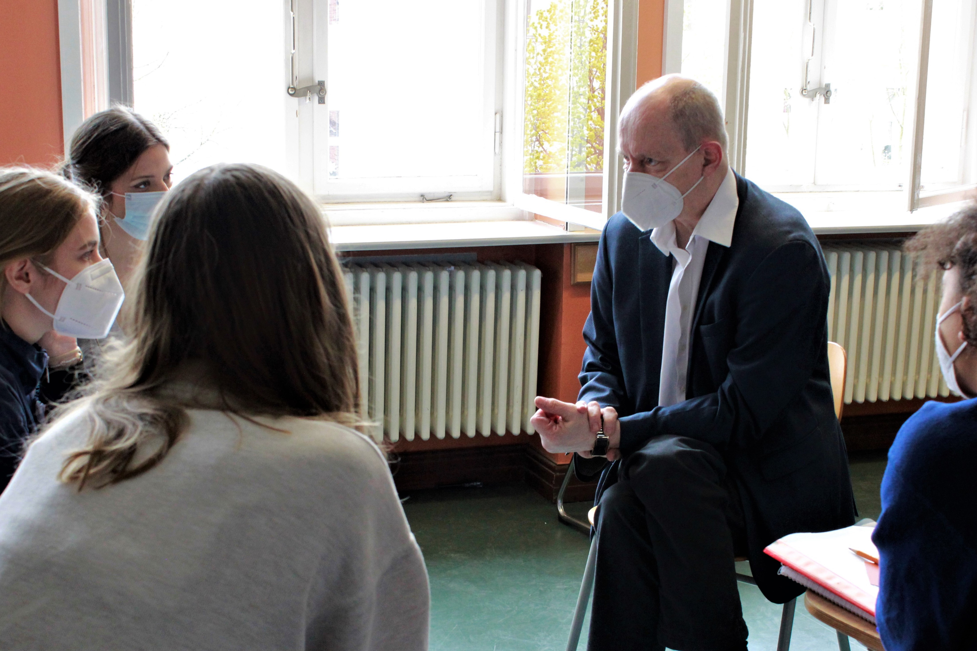 Während der gesamten Vorbereitungszeit blieb ungewiss, ob die geplanten Debatten tatsächlich real von Angesicht zu Angesicht stattfinden könnten oder in ein digitales Treffen verschoben werden müssten. Dank der fallenden Inzidenz in Berlin und unserem großen Musikraum, sowie der Einhaltung der „AHA-Regeln“ besuchten zu unserer Freude doch noch Thomas Seerig (FDP), Michail Nelken (DIE LINKE), Benedikt Lux (GRÜNE), Frank-Christian Hansel (AfD) und Christian Zander (CDU) das Paul-Natorp-Gymnasium, um mit uns Schüler*innen zu debattieren. Die Vertreterin der SPD, Melanie Kühnemann-Grunow, musste bedauerlicherweise kurzfristig absagen.