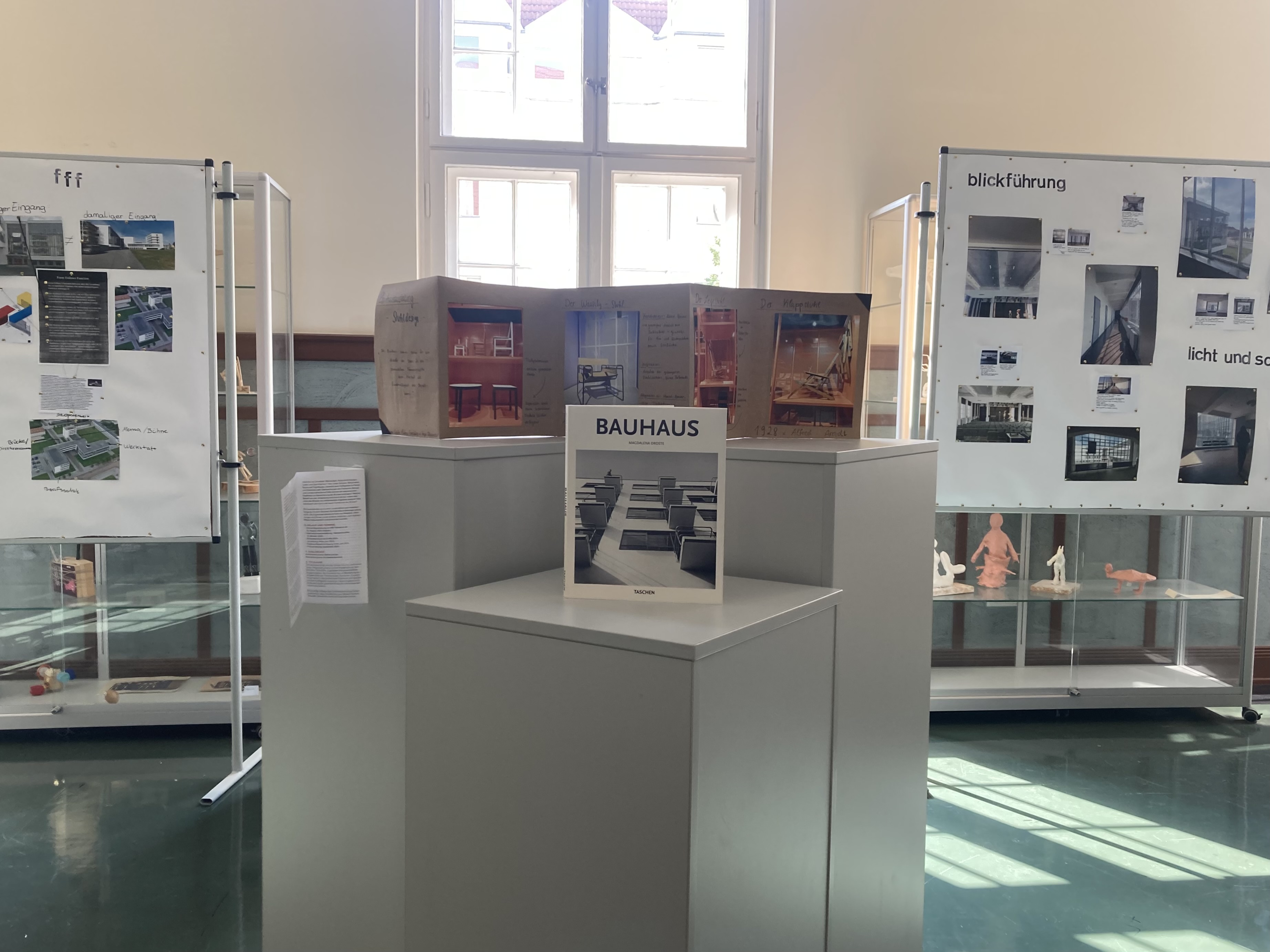 Unsere Exkursion nach Dessau zum Bauhausgebäude, zu den Meisterhäusern und zu dem neuen Museumsbau in Dessau fand bereits im April 2023 statt. Mit unserer Ausstellung möchten wir das vor Ort in Dessau Erlebte, unsere Entdeckungen und Nachbereitetes der Schulöffentlichkeit zugänglich machen und zum Stöbern einladen. Es werden sehr viele selbst geschossene Fotos präsentiert, aber beispielsweise auch funktionale, im Unterricht selbst gebaute, Modelle zum Thema "Studentenbungalow / Solitär" (unsere erste Modellbauarbeit mit Kapaplatten).