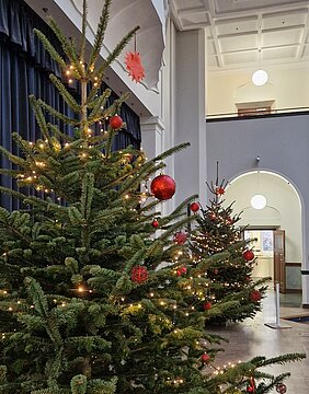 An dieser Stelle danken wir dem Förderverein für die großzügige Finanzierung der beiden prächtigen Weihnachtsbäume, die unsere Aula in der Adventszeit und noch bis in den Januar hinein schmücken und uns eine weihnachtliche Stimmung bescheren!