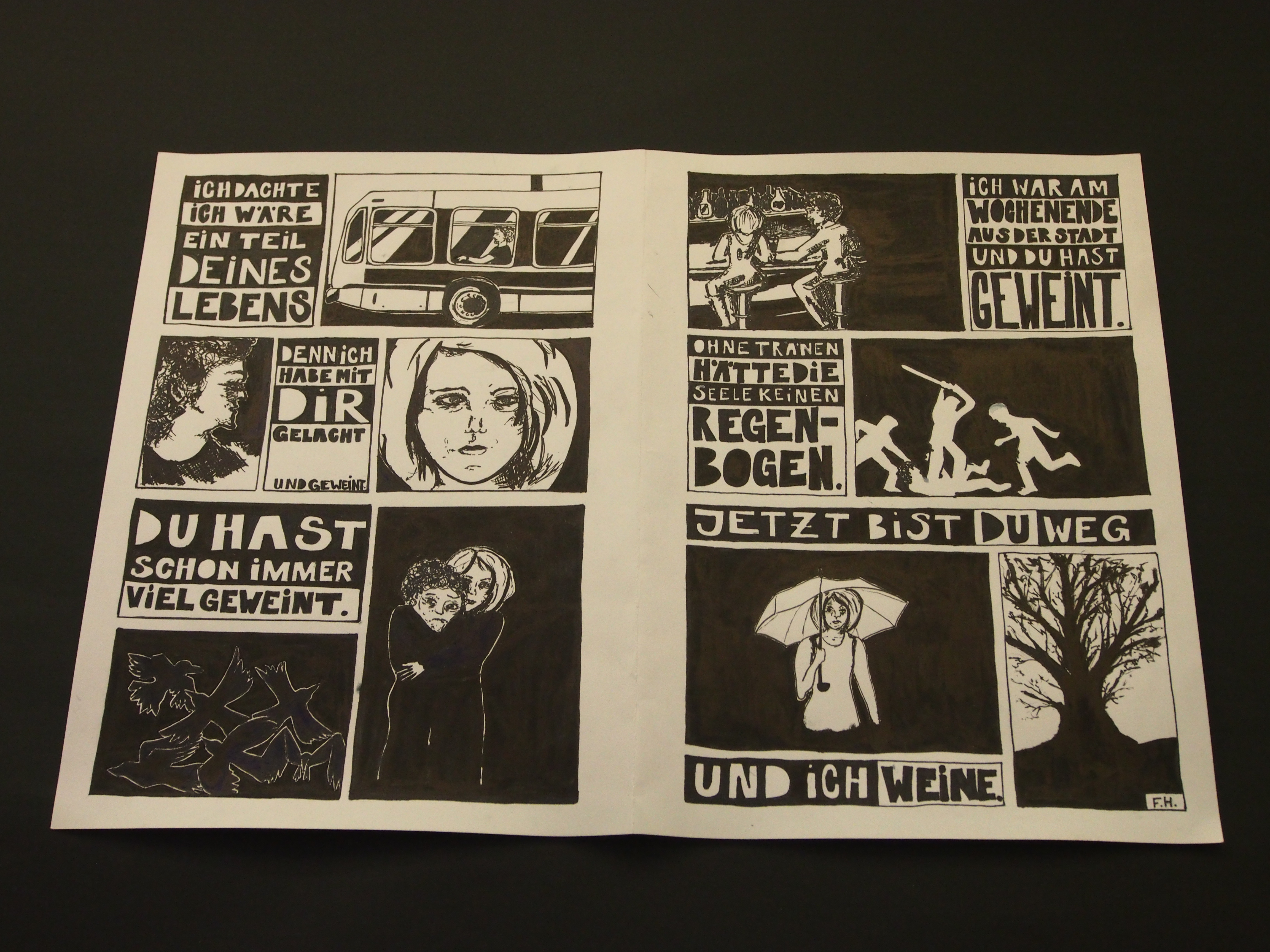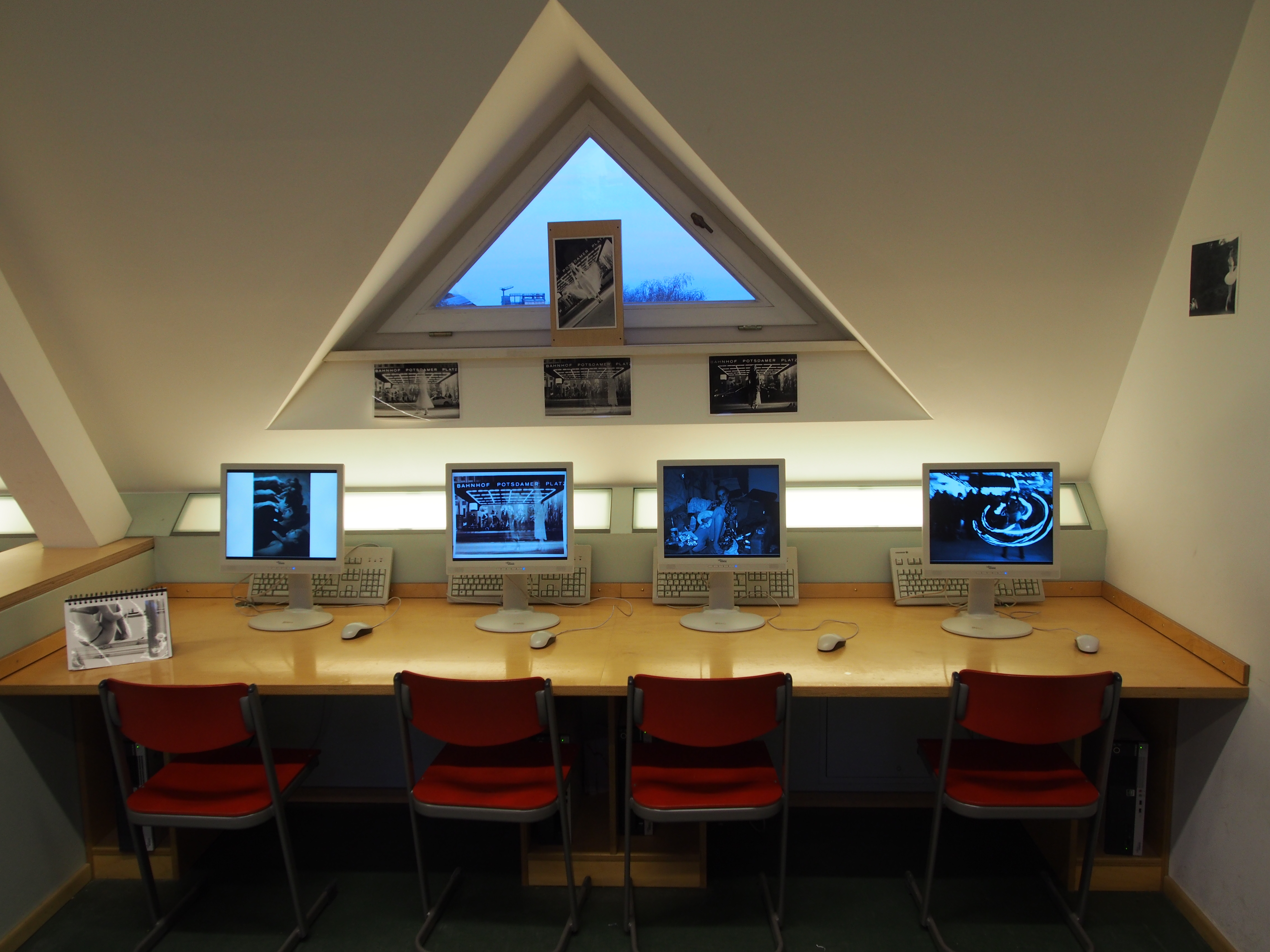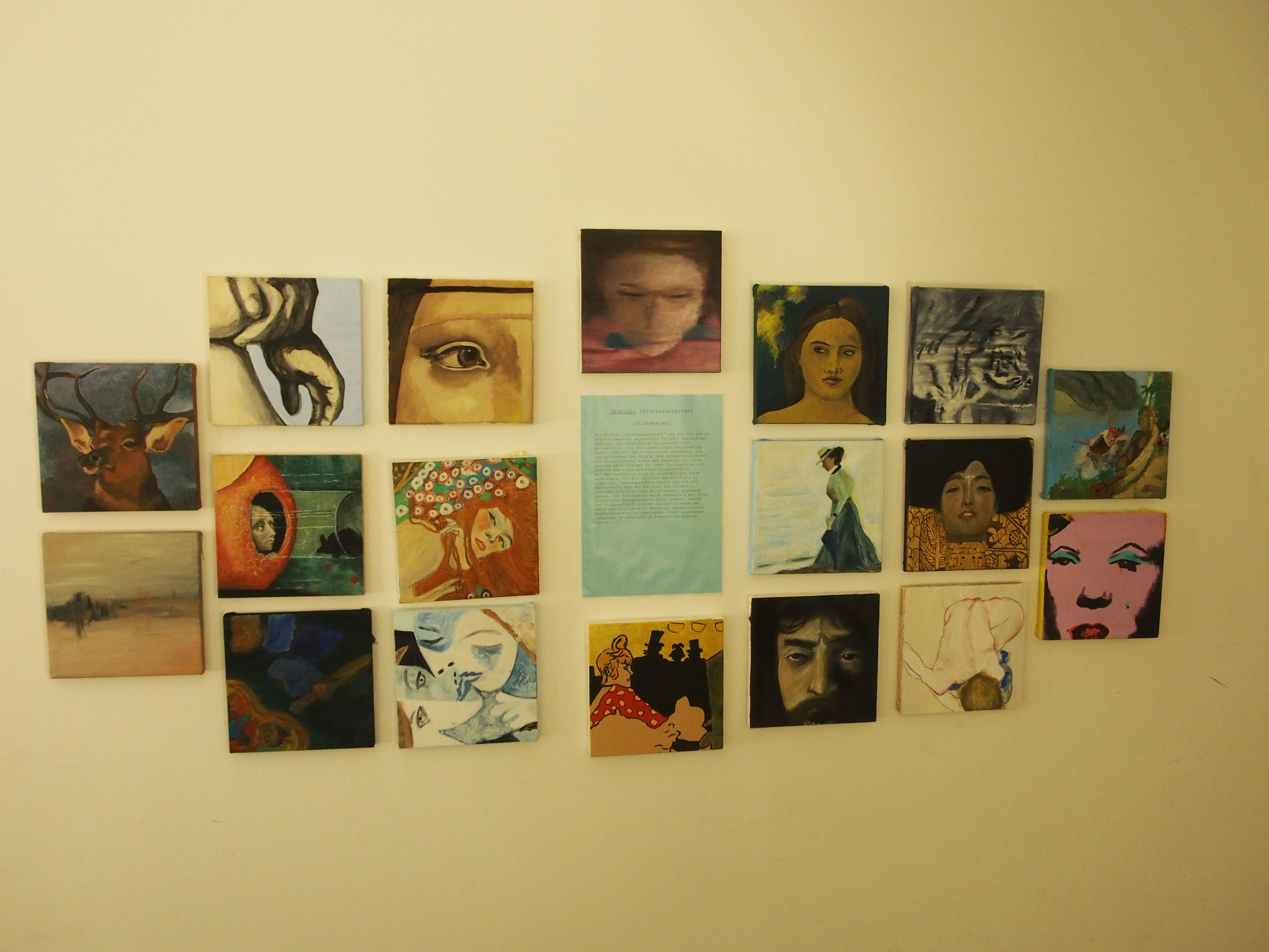 Die Schüler zeigten in der Ausstellung ausgewählte Arbeiten aus den vier Semestern teilweise im Original, hauptsächlich erfolgte die Präsentation aber digital (Diashows an den PCs und Projektionsflächen).
