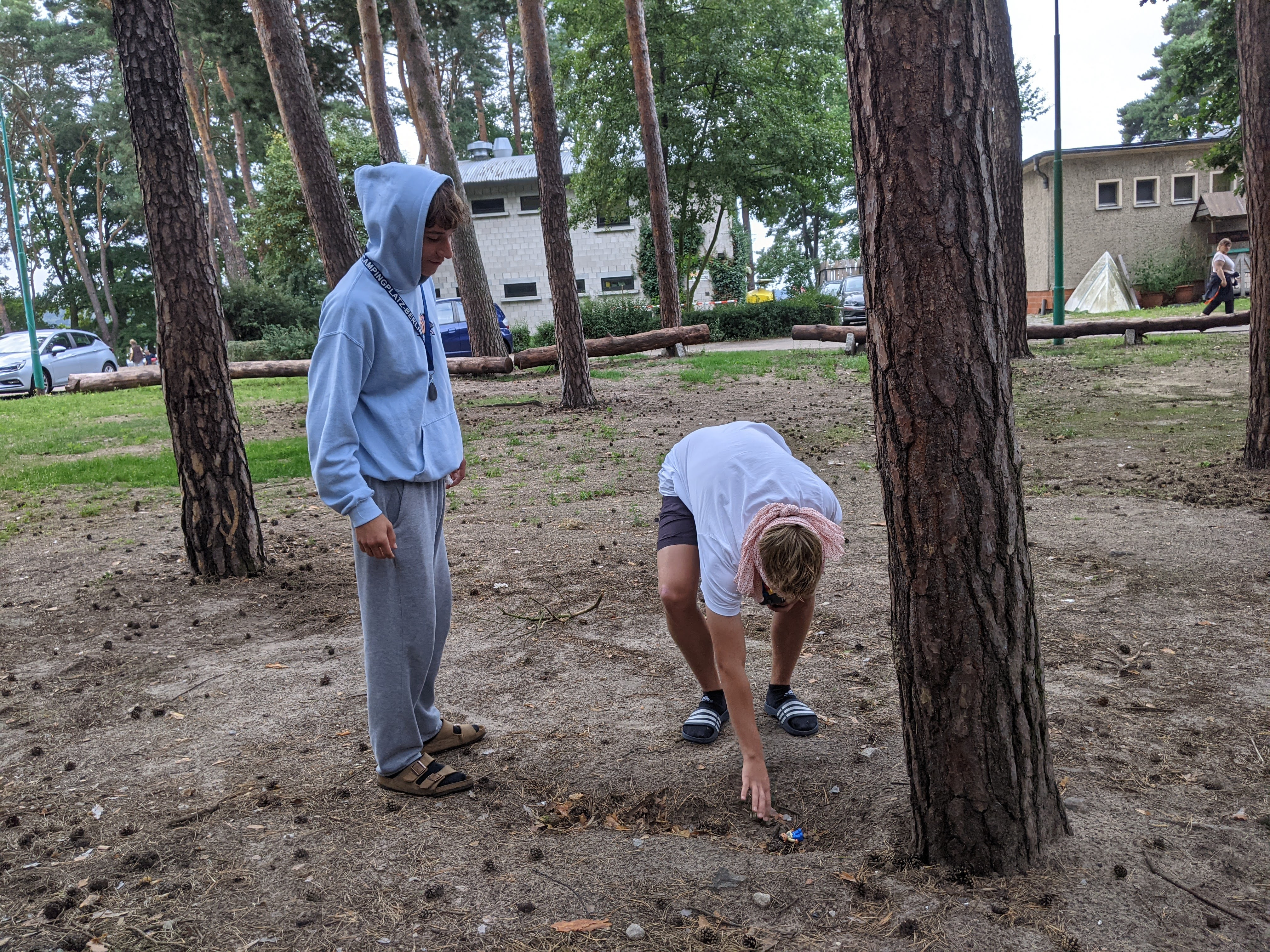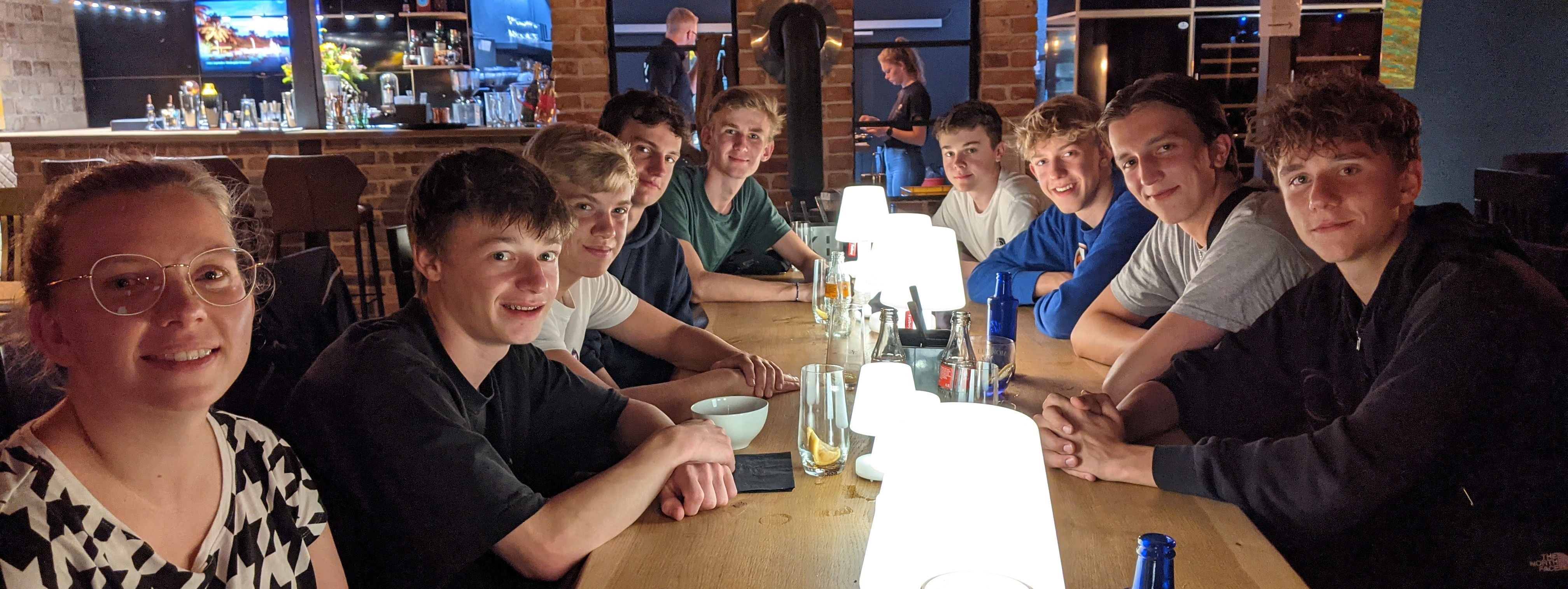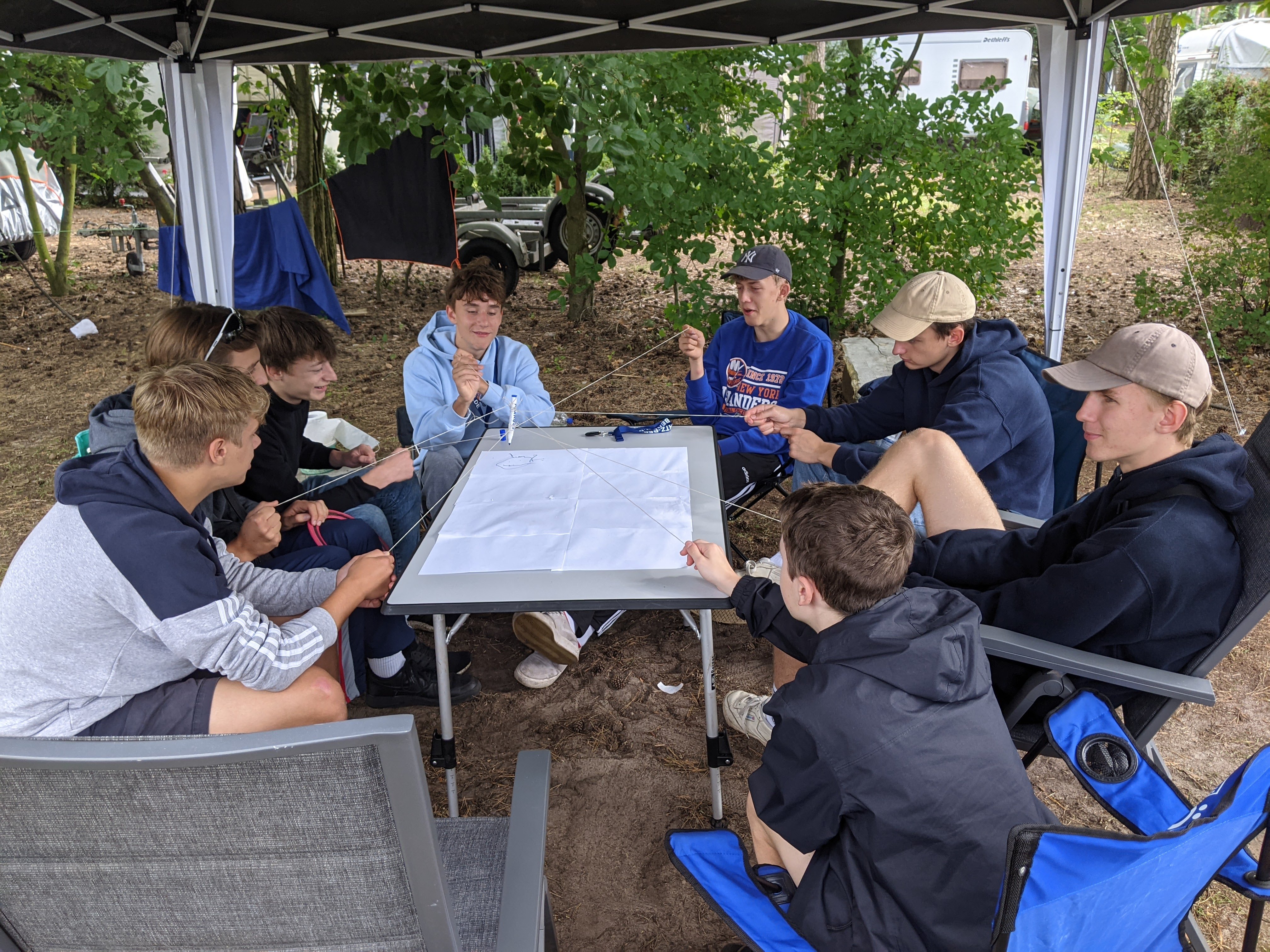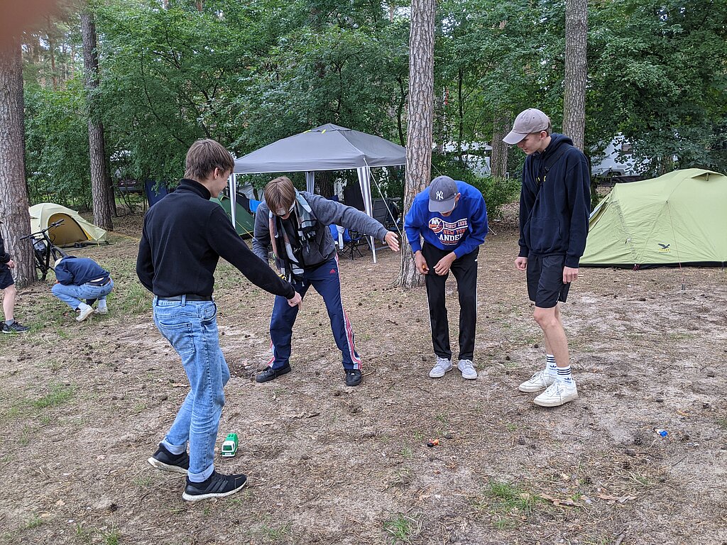Da die Kursfahrt im letzten Halbjahr leider ausfallen musste, konnten wir immerhin im September nun ein verlängertes Wochenende eine „Mini-Kursfahrt“ machen. Es war einigermaßen spontan, sodass die Schüler sich für den Campingplatz am Krossinsee entschieden, zu dem die LK-Teilnehmer sogar schon am Donnerstag nach der Schule mit Rädern und Öffis anreisten. Am Freitag starteten wir den Tag mit einem Tretboot-Ausflug auf den See bei strahlendem Sonnenschein. Anschließend konnten sich die Schüler in diversen Teamspielen beweisen und Kreativität sowie Teamgeist zeigen: