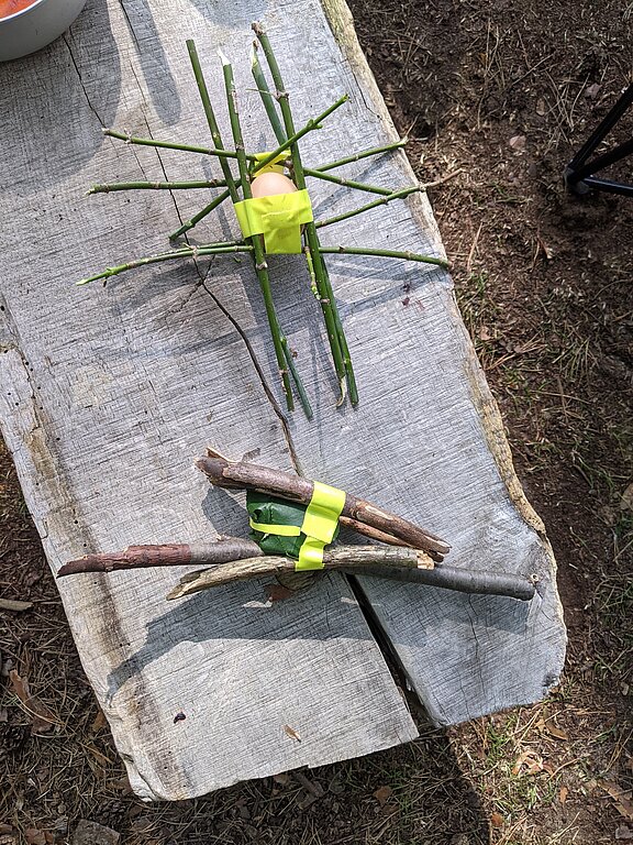 Welches Team baut ein Eierschutzsystem, sodass das Ei beim Aufprall auf den Boden nicht kaputt geht?