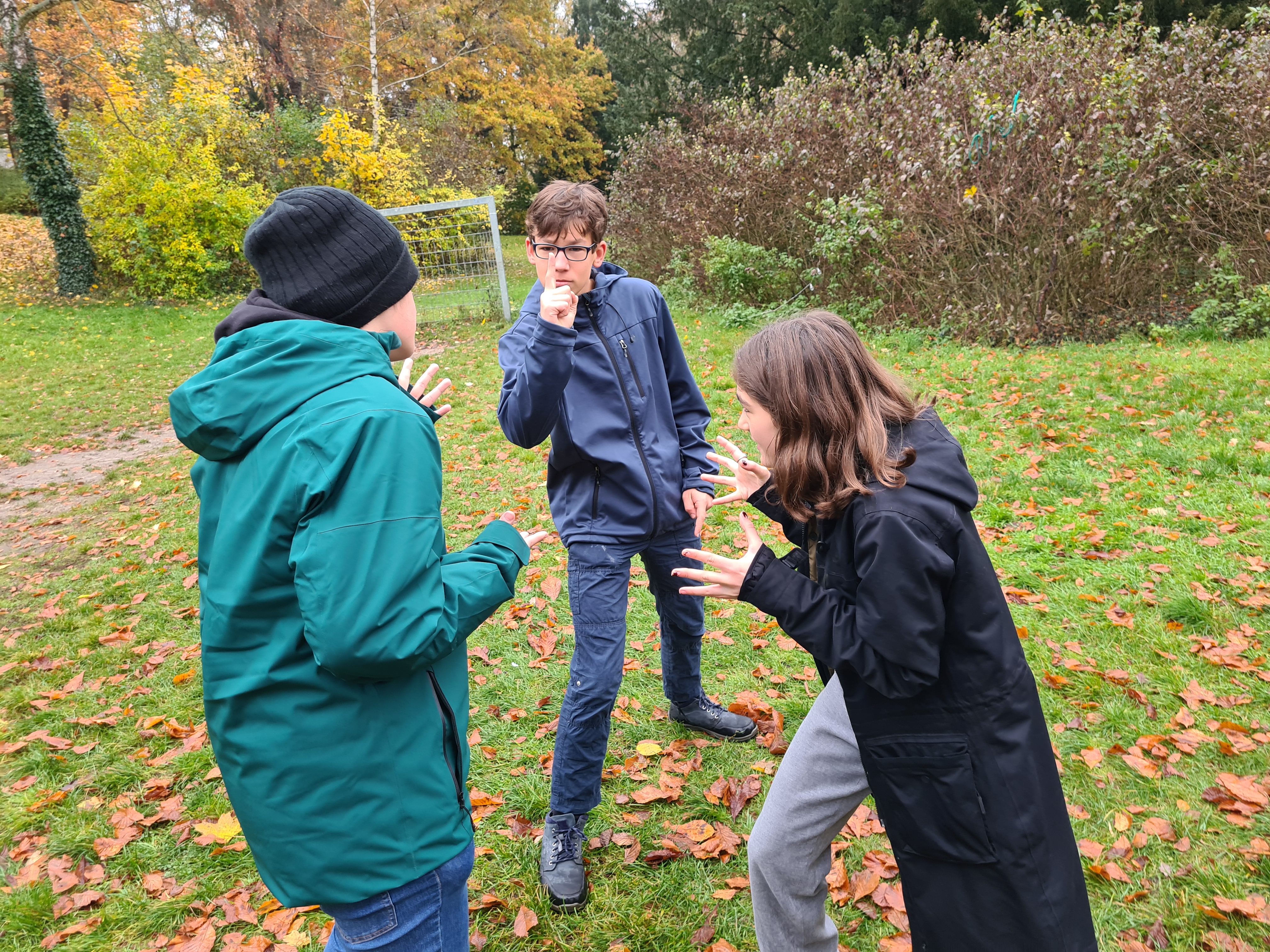 In einer unserer gemeinsamen Aktivitäten, einem Warm-Up Spiel, sollten Situationen zum Thema Schüler*innenvertretung nachgestellt werden: hitzige Diskussion - das Gefühl, wenn man ein Projekt erfolgreich umgesetzt hat - langweilige SV-Sitzungen (die es bei uns natürlich nicht gibt ;))