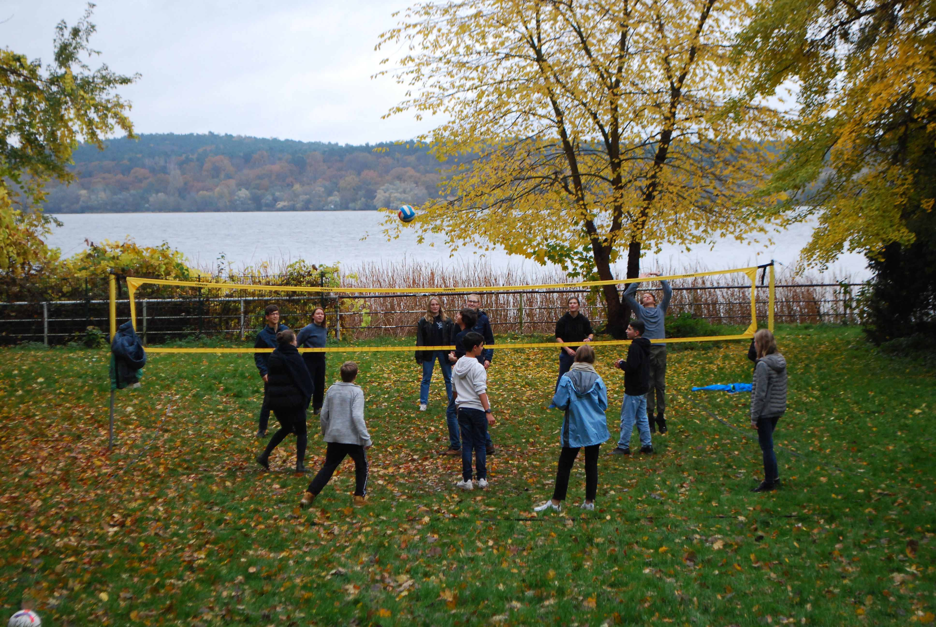 In unserer Freizeit haben wir gemeinsam Spiele gespielt wie Volleyball, Basketball, Schach, Tischtennis…