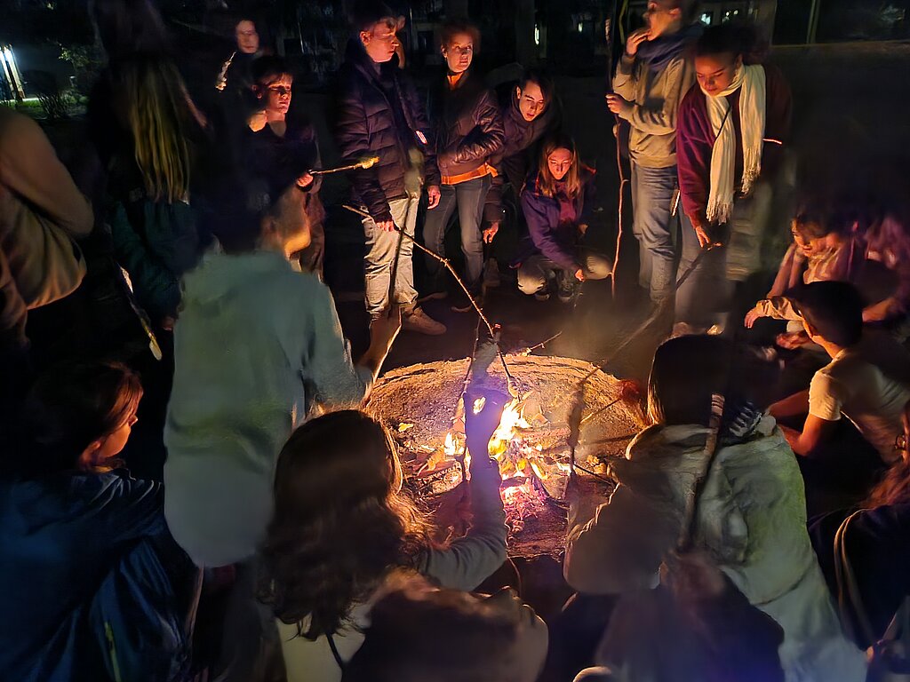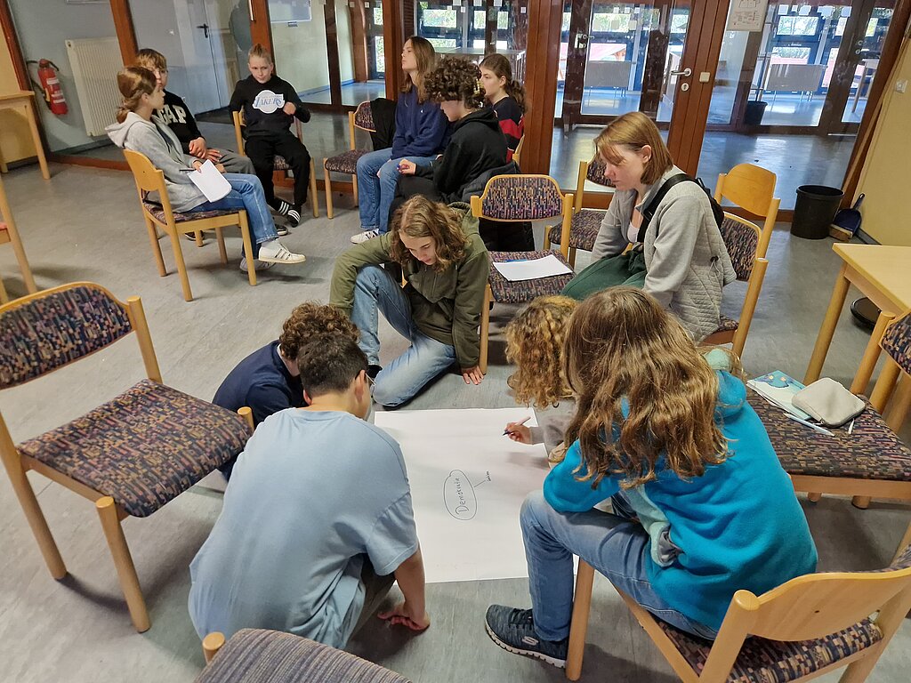 Am Freitag stiegen wir schließlich in die Projektarbeit ein. Es bildeten sich die Arbeitsgruppen AG Wahlen, AG Kooperation mit RGS, AG Outdoor Gym, AG Trennwände Jungstoiletten, AG Genderbasierte Diskriminierung, AG Weihnachtsmarkt, AG Flohmarkt, AG Abschiedsfest für die 12. Klasse, AG Nachhaltige Schule, AG Cafeteria und AG Schüler*innen bei der Einstellung von Lehrer*innen. Diese begannen sofort ihre Arbeit, schrieben Konzepte und überlegten, was alles zu tun war. Nachmittags nutzten einige das schöne Wetter und badeten im See. Nach dem Abendessen fanden wir uns dann alle am Lagerfeuer zusammen. Wir machten Stockbrot – was manchmal besser und manchmal schlechter klappte - grillten Marshmallows und wärmten uns am Feuer.
